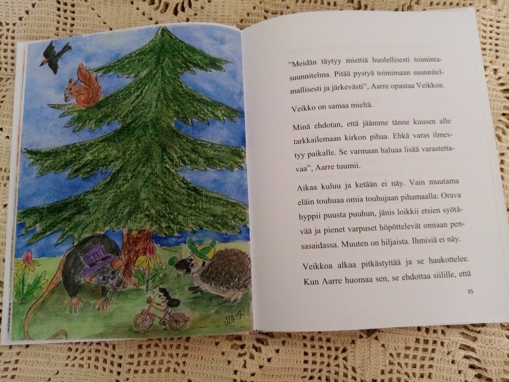 Myös raikas akvarellikuvitus on kirjailijan itsensä toteuttama.